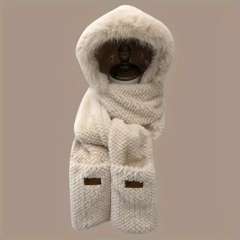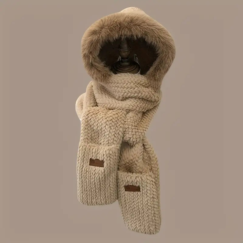 Aubri Muts & Sjaal dames set, 2‑in‑1 winteraccessoire met bontkraag & elastische pasvorm