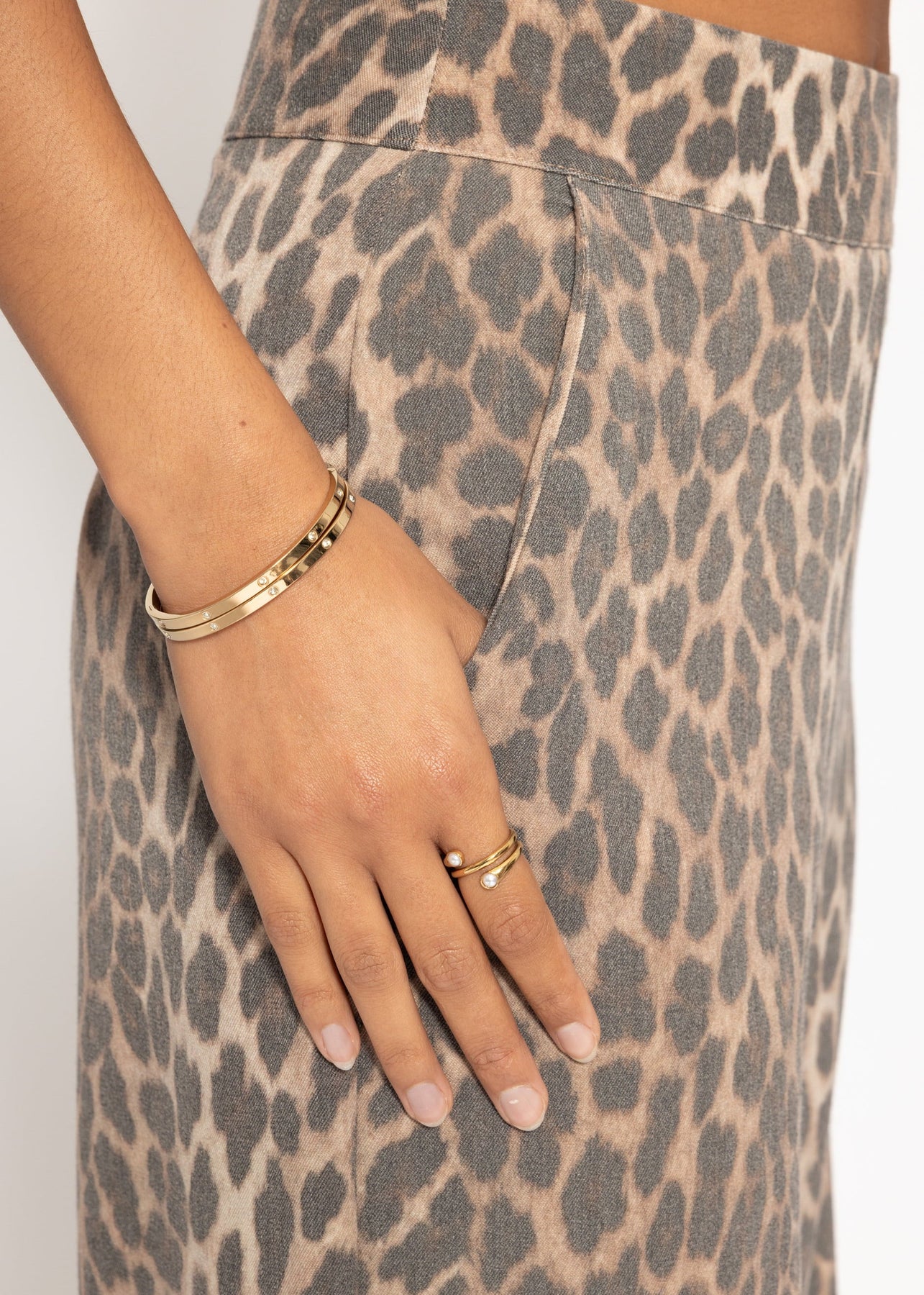 Deze broek met luipaardprint is het perfecte statement piece voor de modebewuste vrouw. De opvallende print geeft een spannende en stijlvolle uitstraling, terwijl het wijde, soepel vallende model zorgt voor een moderne en toch casual look. Dankzij de ritssluiting aan de zijkant sluit de broek perfect aan en is hij makkelijk aan en uit te trekken. De steekzakken bieden extra comfort en versterken de nonchalante elegantie van het ontwerp. Draag de broek als opvallende set met de bijpassende blazer of combineer losjes met basic items, de stylingmogelijkheden zijn eindeloos.