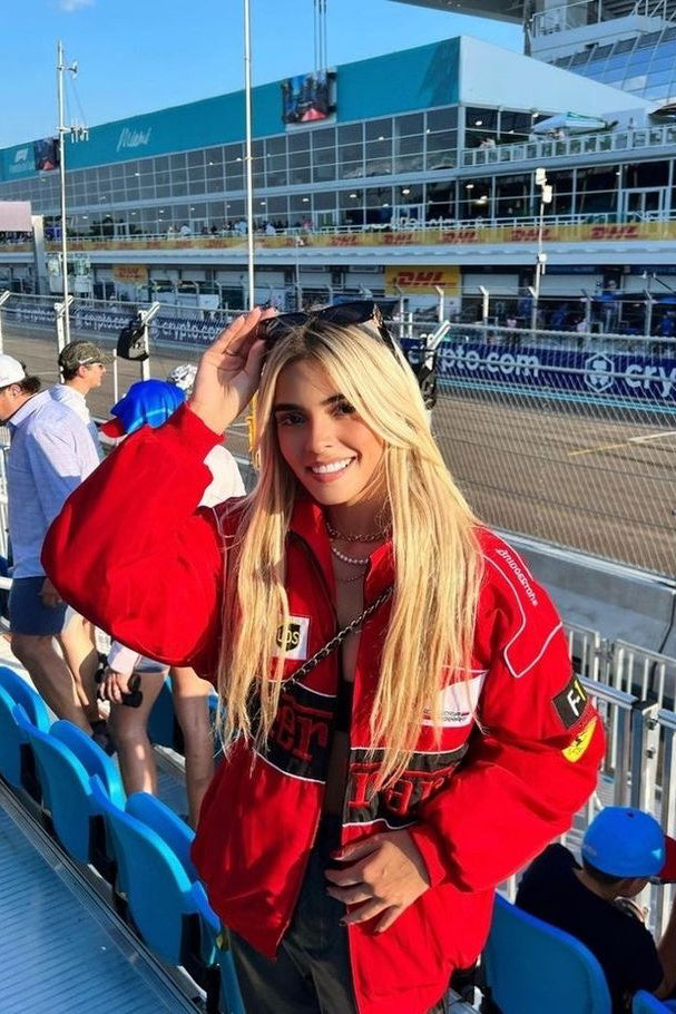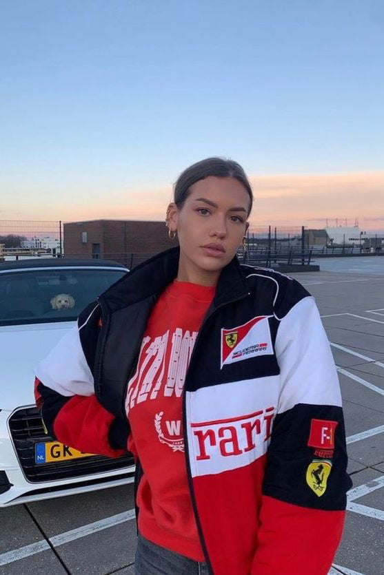 Fanny | Vintage racejack retro dames polyester met patches en ritssluiting