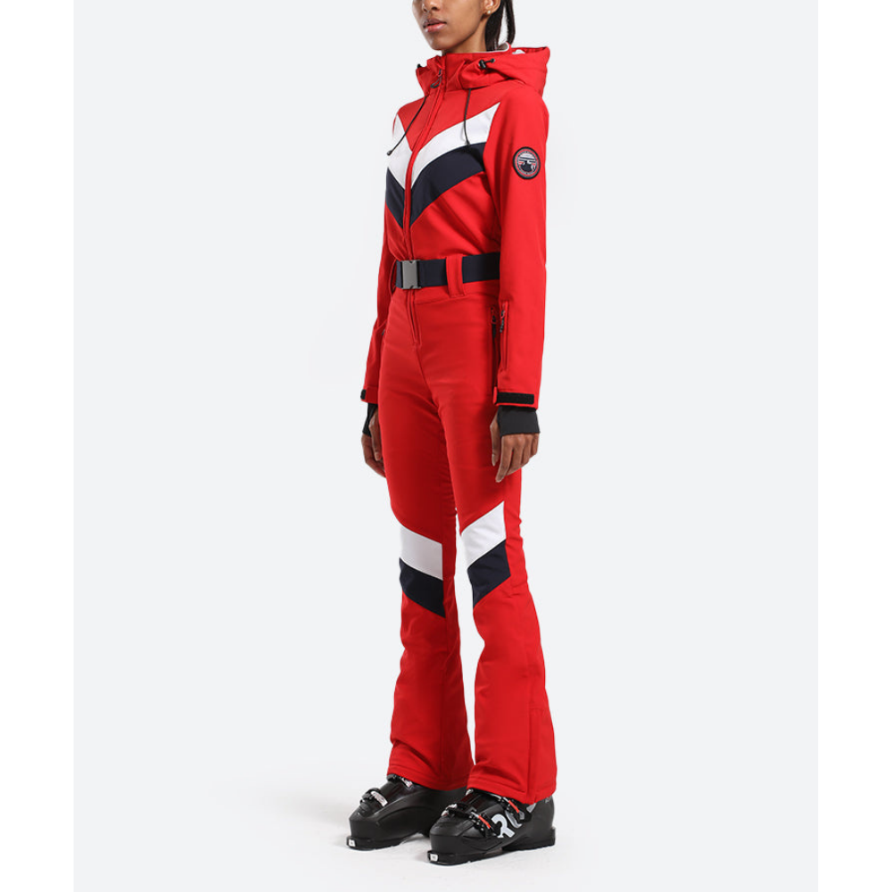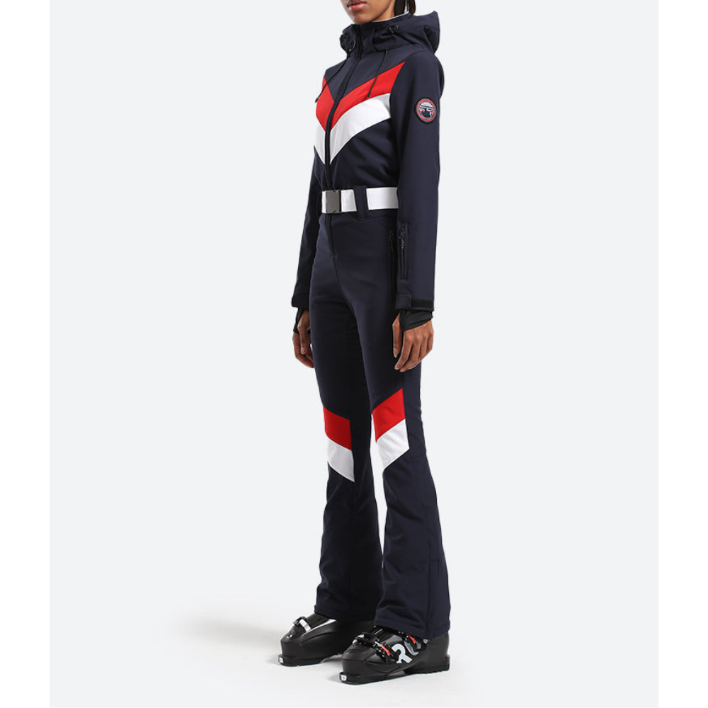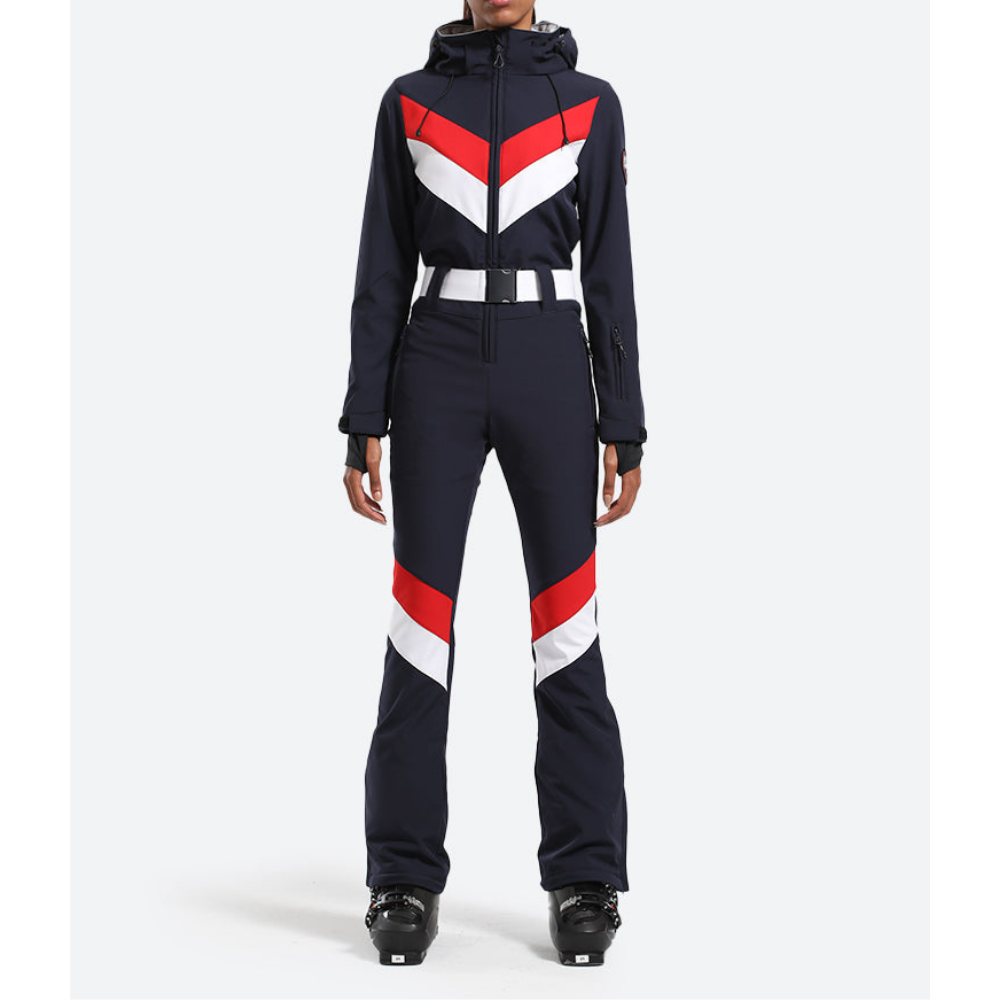 Deze eendelige outfit geeft je uitstraling in de sneeuw een gestructureerde vorm en een zelfverzekerde look tijdens sportieve activiteiten. Het opvallende gestreepte design zorgt voor een krachtige uitstraling op de piste of bij wintersport. Het biedt een moderne look en vult functionele outfits aan met strakke lijnen.